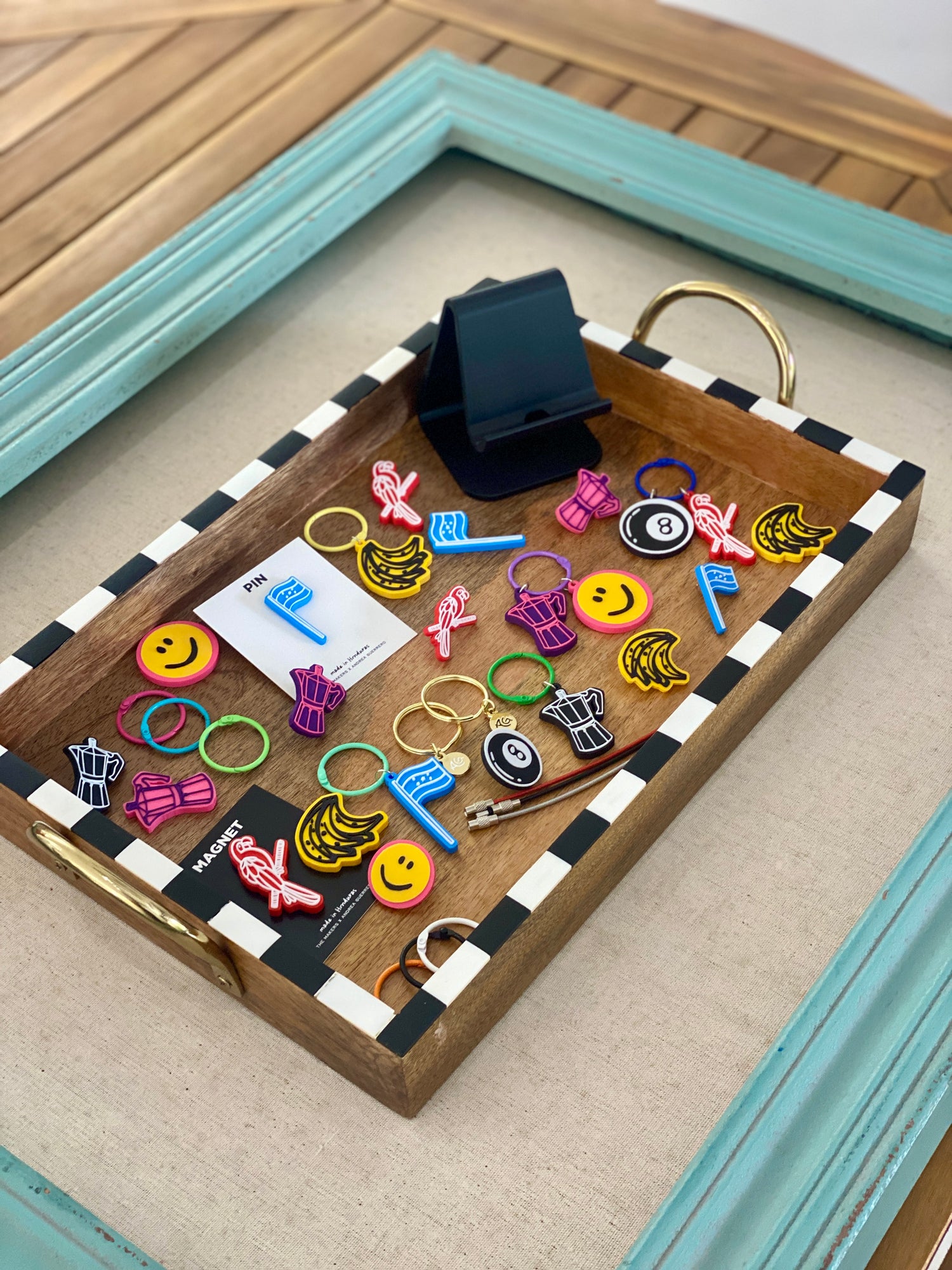 Descubre nuestra nueva línea de accesorios con nuestras ilustraciones icónicas en colores vibrantes. Incluye pins, llaveros e imanes: el complemento perfecto para acompañarte donde sea que vayas, fabricado con materiales resistentes para cada aventura.