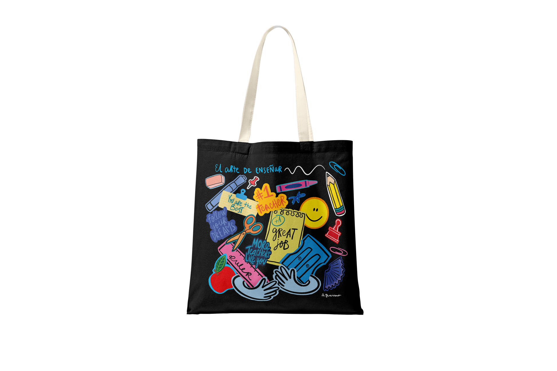 Pero lo que realmente hace única a esta tote bag es su diseño de arte exclusivo. Cada diseño es creado y plasmado en la bolsa con una técnica de impresión de alta calidad, lo que garantiza que el arte se mantendrá vívido y colorido incluso después de varios usos y lavados.
