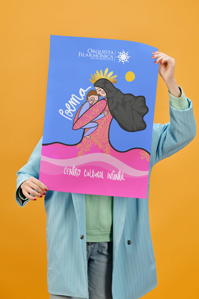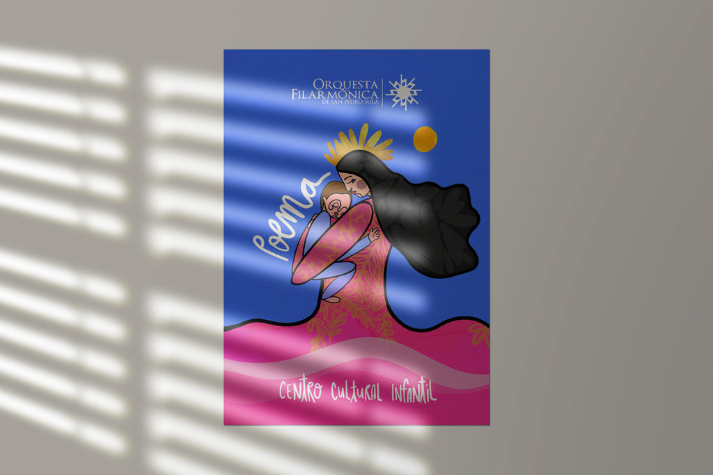 Colaboramos con la Orquesta Filarmónica de San Pedro Sula para crear una ilustración inspirada en el Mes de las Madres, que captura la belleza y el vínculo único entre una madre y su hijo. Optamos por una paleta de colores vibrantes para realzar la ilustración y lograr un impacto visual poderoso, ya que nada es más trascendental para una madre que su hijo o hija. Me fascinó trabajar en esta ilustración, pues transmite un mensaje de profundo significado