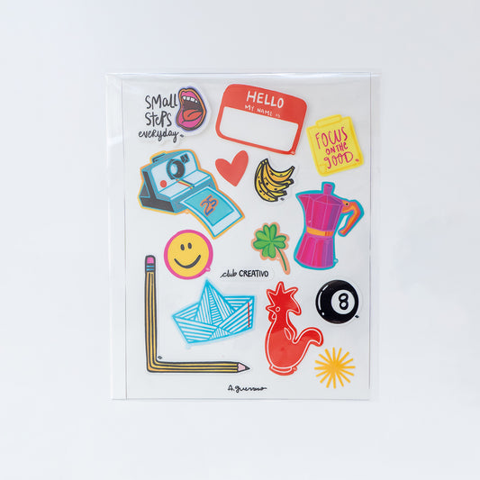 Es una colección de adhesivos decorativos que pueden ser utilizados en una variedad de superficies, incluyendo laptops, teléfonos móviles, libros, paredes y más.